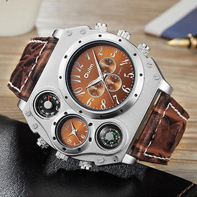 Relógio de quartzo masculino, mostrador múltiplo com bússola, relógio casual